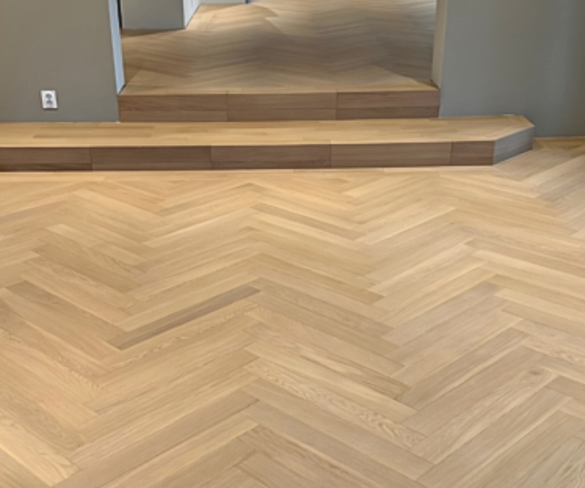 Fiskebeinparkett med integrert ramme i Gjøvik