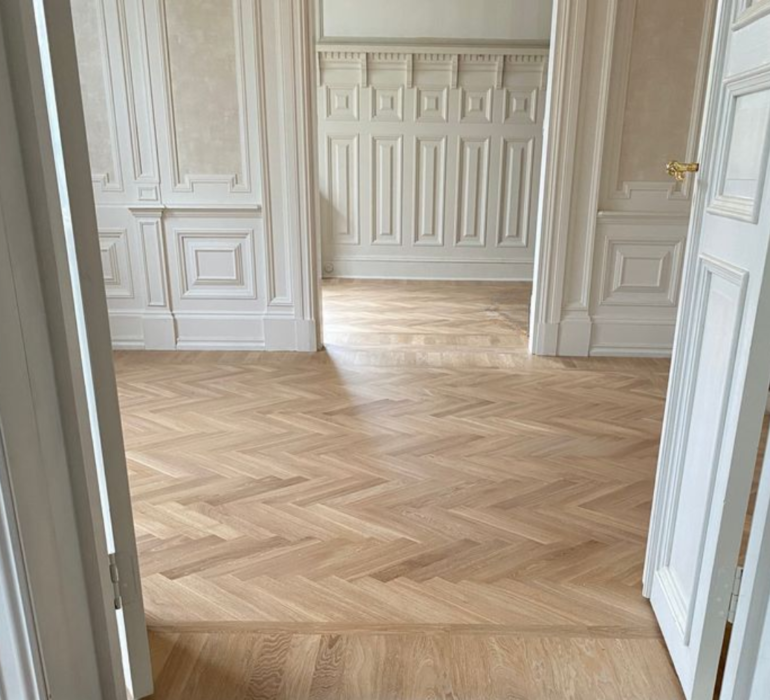 Fiskebeinparkett med presis tilpasning